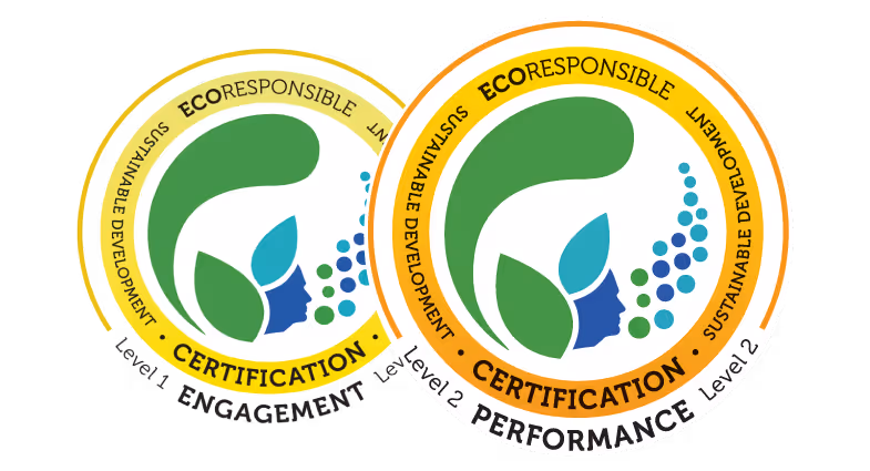 Cette distinction a reconnu nos efforts visant à améliorer les politiques environnementales et à mettre en œuvre un large éventail d'initiatives durables. En novembre 2023, nous avons obtenu la certification Eco-Responsible™ de niveau 2, démontrant des progrès significatifs dans nos pratiques environnementales, économiques et sociales complètes. Pour en savoir plus, cliquez ici.